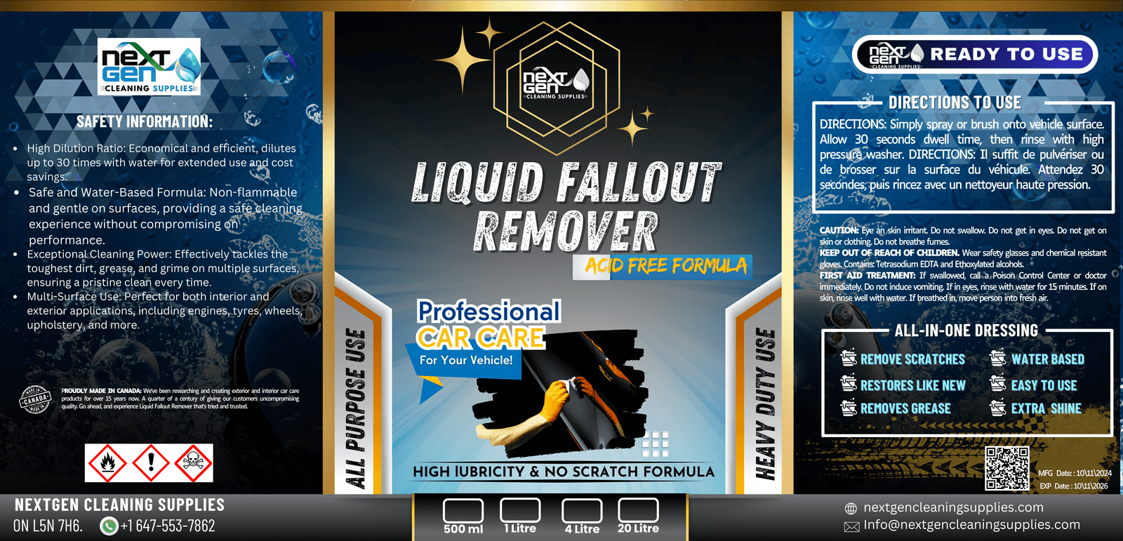 Liquid Fallout Remover is designed to provide the safest and most effective approach for removing potentially damaging fallout from your vehicle’s paintwork and rims. In addition to its remarkable fallout removal capability, Liquid Fallout Remover has a corrosion inhibitor and an additive designed to resist the effects of acid rain. Liquid Fallout Remover is a thick, gel-like solution that adheres to vertical surfaces.